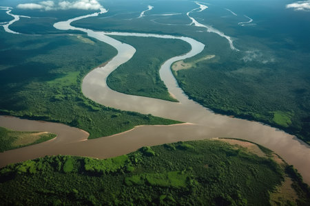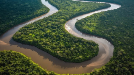 aerial view of the amazon river, with its winding and murky waters, created with generative ai