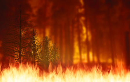 fire. wildfire, burning pine forest in the smoke and flames. Evening