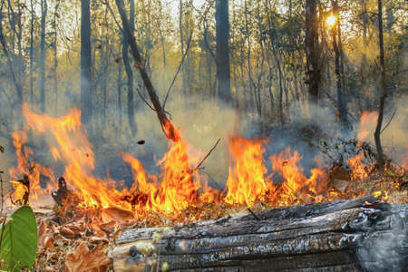 fire. wildfire at sunset, burning pine forest in the smoke and flames