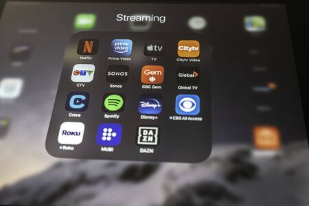 January 18 2020 - Calgary Alberta Canada - Ipad tablet with icons for various media streaming services
