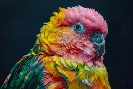 Detailed closeup of a colorful macaw parrot, showcasing its beautiful feathers and striking eyes