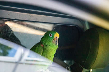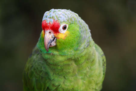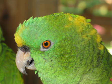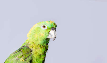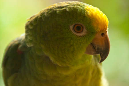 Portrait of Amazona ochrocephala or yellow crowned parrot (but it's a green parrot), Tenjo, Cundinamarca, Colombia.