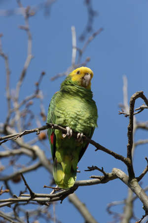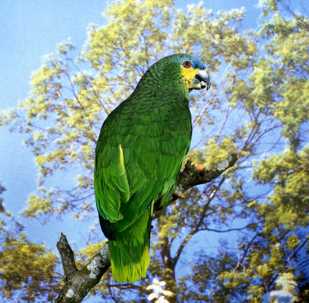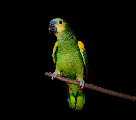 Orange-Winged Parrot, amazona amazonica, Adult standing on Branch