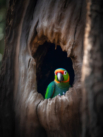 a parrot mimicking sounds in the dense jungle, created with generative ai
