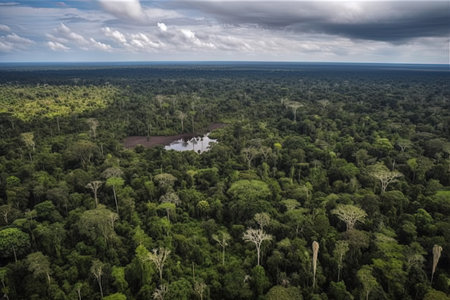 aerial view of the amazonas, with birds flying low over the rainforest canopy, created with generative ai
