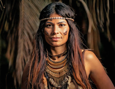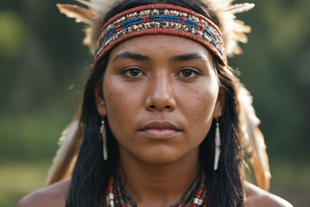 AI generated image showing the portrait of an indigenous woman in blurry back