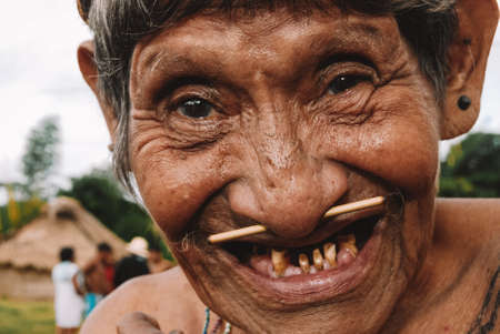 Indian elder man from the Arara of Laranjal tribe near Xingu River, Amazon, Brazil. 2007.