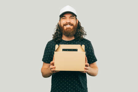Delivery holding out box to customer professional photography