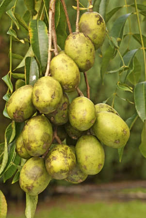 Longan ripe fruits (Dimocarpus longan) on the tree, in shallow focus
