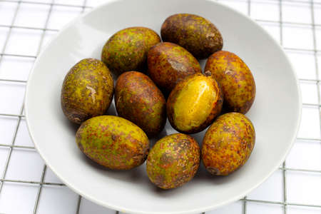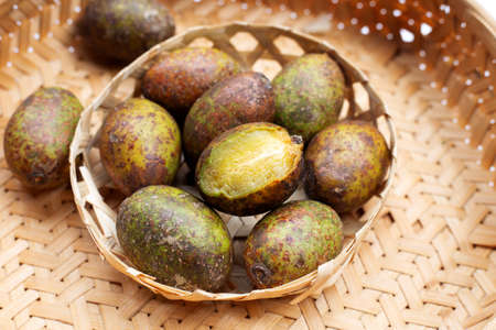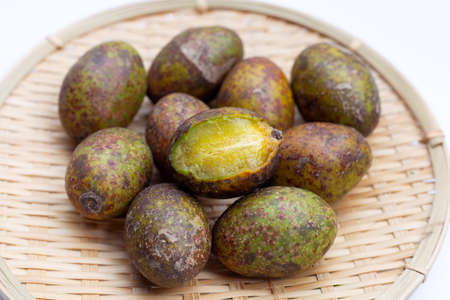 Hog plum in bamboo weave plate on white background