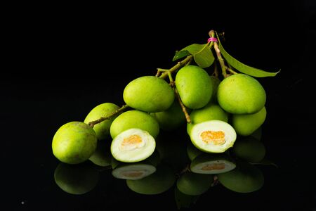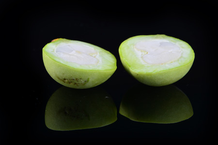 Baccaurea motleyana slice isolate on black background, close-up