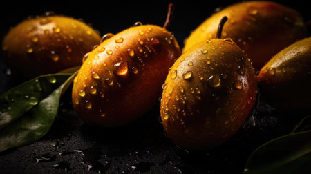 Fresh ripe mango with water drops on black background. close up