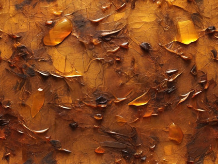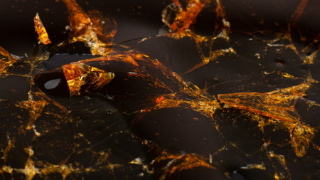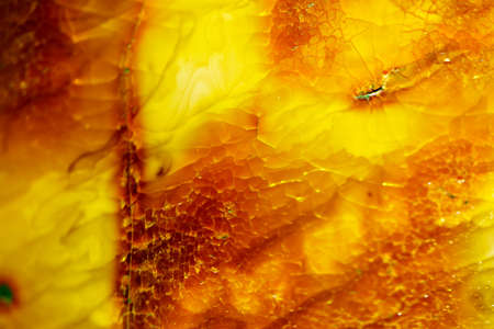 Amber in macro photography: amazing textures and warm color of stone, creating unique accents for jewelry and decor, close-up.