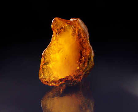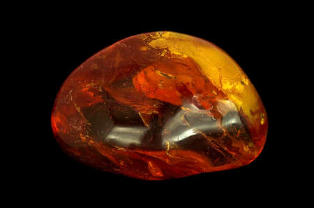 Shiny yellow gold amber stone isolated on black background. Found near Kaliningrad city, Baltic sea, Russia. For cosmetic or medicine articles, mineralogy websites, natural science museum wall chart.