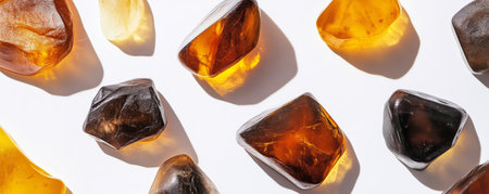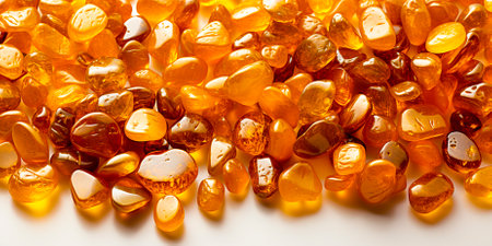Amber stones from Baltic Sea, Lithuania, on a white background.