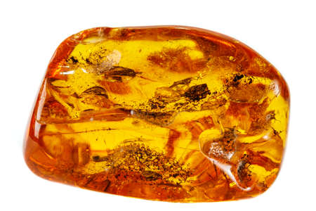 Natural polished amber on a white background