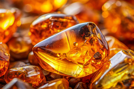 Close up view of natural translucent amber.
