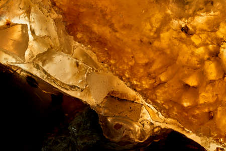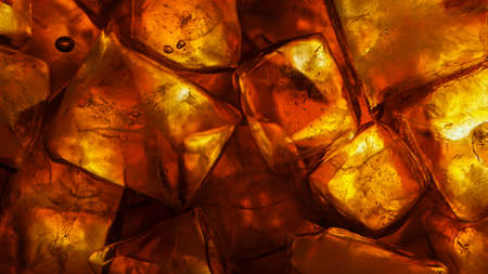 Macro. Closeup of amber as background texture or backdrop. Golden resin gem.