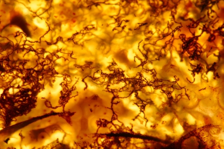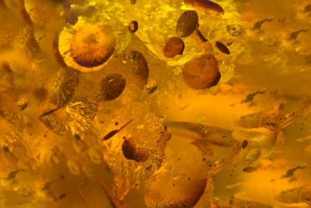 Amber in sun with inclusions of insects
