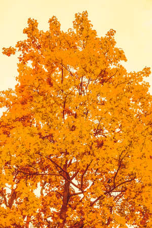 Autumnal tree with yellow leaves against blue sky. Color toning applied.