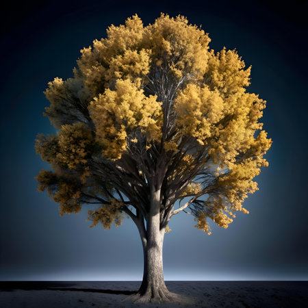 A stunning 3D illustration of a Ziziphus tree. rendered in intricate detail. The golden leaves and rugged bark create a captivating natural scene perfect for adding a touch of nature to your designs.