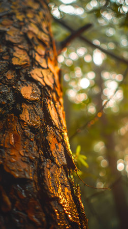 Tree, Deforestation awareness, Empowering communities for conservation, Forest setting, Rainy weather, Photography, golden hour, Depth of field bokeh effect, Handheld shot view