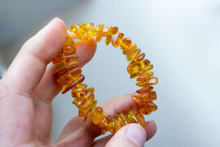 Sunny beads of fire amber. Natural gemstone background, jewelry concept