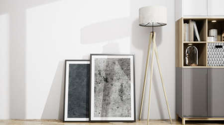 mock up poster frame in modern interior background, interior space, home office, Contemporary style, 3D render, 3D
