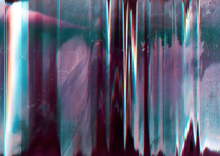 Glitch abstract background. Digital distortion. Purple blue noise on dirty screen with dust scratches.