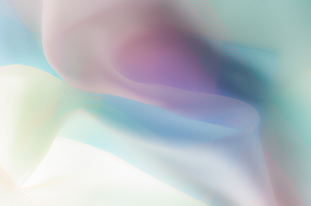 Blurry, not sharp sharpness Texture, background, pattern. Silk fabric is transparent, yellow-pink green in blue. Abstract soft chiffon texture background.