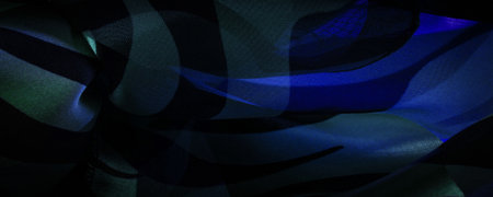silk fabric in abstract green and blue-black colors. Abstract watercolor paint, painted textured vertical silk fabric, canvas, macro, close-up.Texture. Background. Pattern.