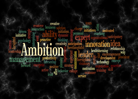 Word Cloud with AMBITION concept create with text only.