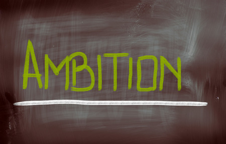 Ambition Concept. Illustration with icons, arrows and keywords on a black chalkboard background