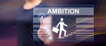 Woman touching an ambition concept on a touch screen with her finger