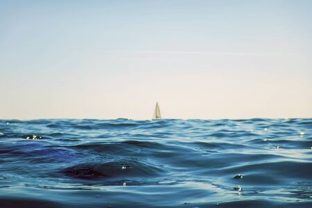 White Sailing Boat Sailing on the Horizon, Open Blue sea