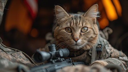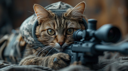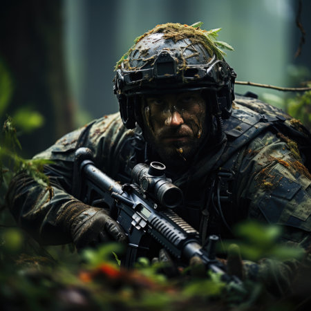 In the depths of concealment, a sniper's vigilant gaze pierces the distance.Generative AI