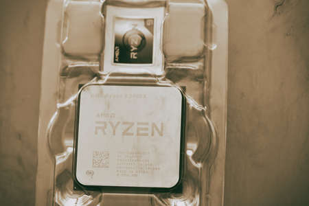 Melbourne, Australia - Jul 29, 2019: Close-up of third generation Ryzen processor