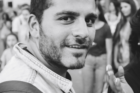 Portrait of a gay man - member of the LGBTQ community. Black and white photo. BW