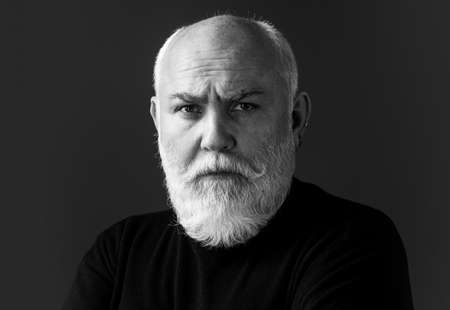 Senior Man. Close up portrait of an elegant senior man with grey hair isolated on black background.