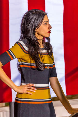 American protester listening to speech, american flag. Human rights. Activism concept.