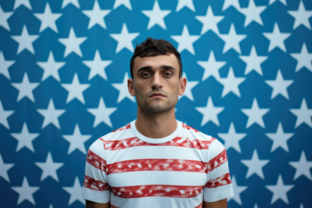 Be cool Young African man standing against American flag and looking away : Generative AI