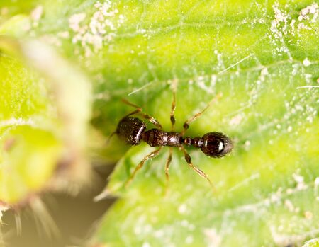 Macro black ant on a leaf Brown