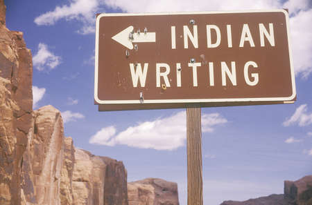 Directional sign to Petroglyphs, Newspaper Rock, NM