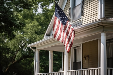 porch american flag in front of house illustration traditional wd, wavg proudly, welcome display porch american flag in front of house