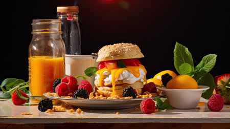 healthy breakfast, with eggs, fruit, and toast, created with generative ai