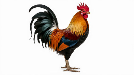 Elegant purebred brown chicken perfectly captured, highlighting its rich feathers and charm while set on a bright white canvas.