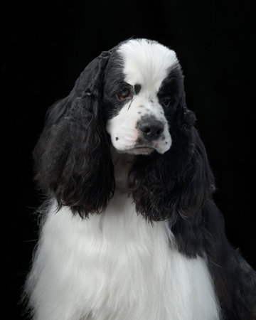 American Cocker Spaniel with calm expression on black background