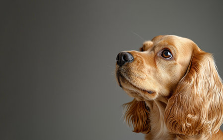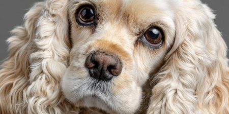 A Charming Cocker Spaniel with Bright Eyes and Playful Expression on a Soft Gray Background