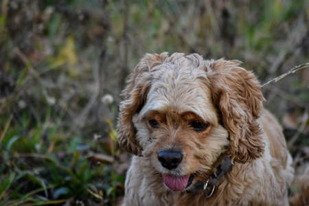 Portrait of cute american cocker spaniel dog at the park.