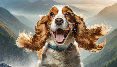 Happy and crazy young english cocker spaniel dog with long ears, AI generated image